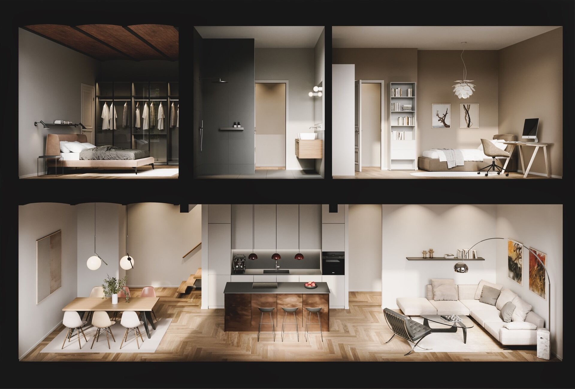 21 einzigartige Einheiten von 27 bis 150 m2 auf rund 1.300 m2 historischer Wohnfläche. Vollständig entkernt und mit neuem Dachstuhl bietet dieser Altbau Charakter und Komfort zugleich. Einige der einzigartigen Einheiten bieten besondere Details wie Kappendecken mit großzügigen Raumhöhen und tiefen Fensterbänken. Ein Teil der Wohnungen ist direkt über einen der 2 neu erstellen Fahrstühle erreichbar.