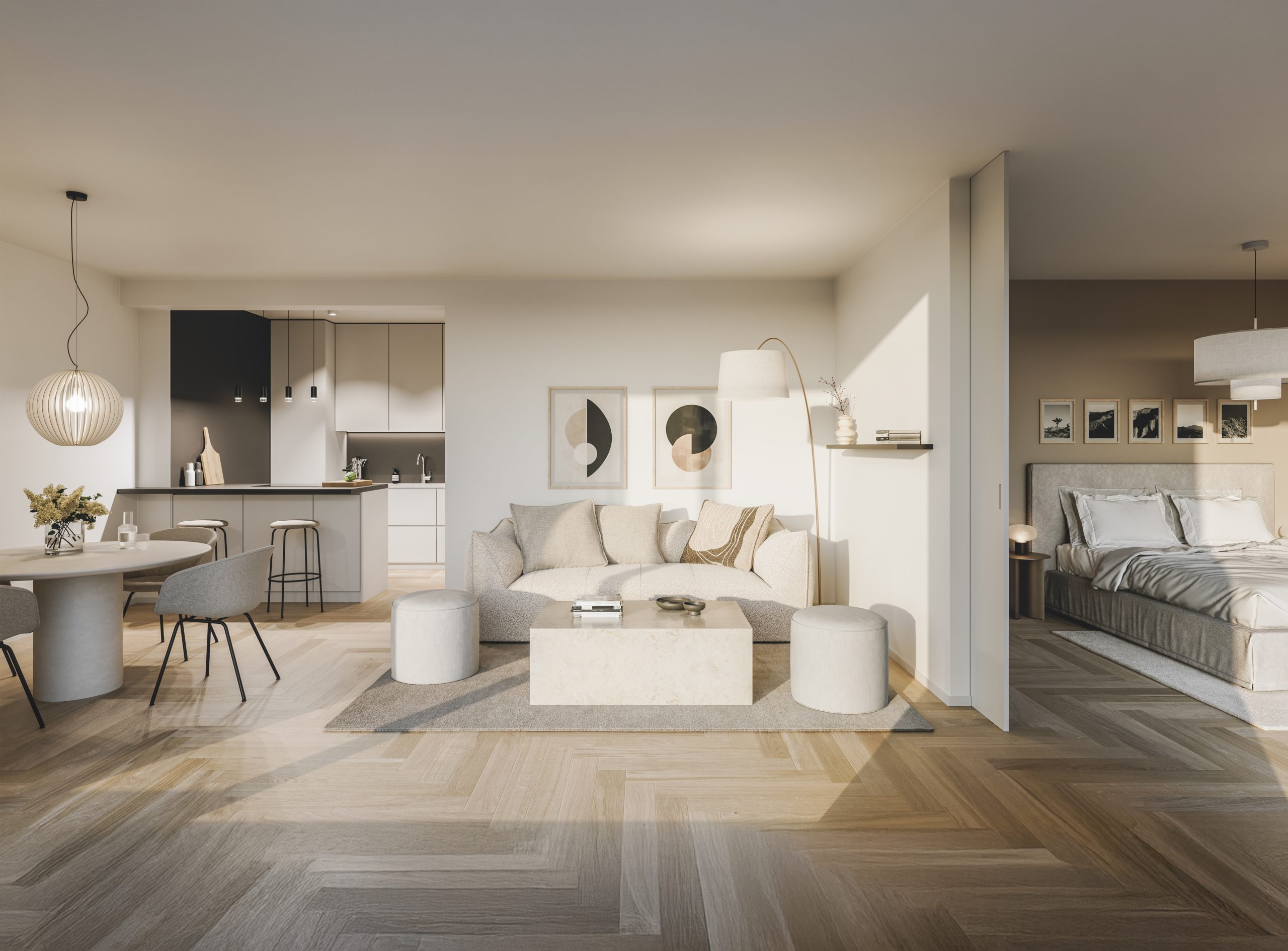 Stilvoll wohnen und erleben – die 3-Zimmer- Musterwohnung im Neubau begeistert mit hochwertiger Möblierung namenhafter Designer ausgewählt von Dopo Domani Berlin und einer perfekt integrierten Designküche von Poliform.